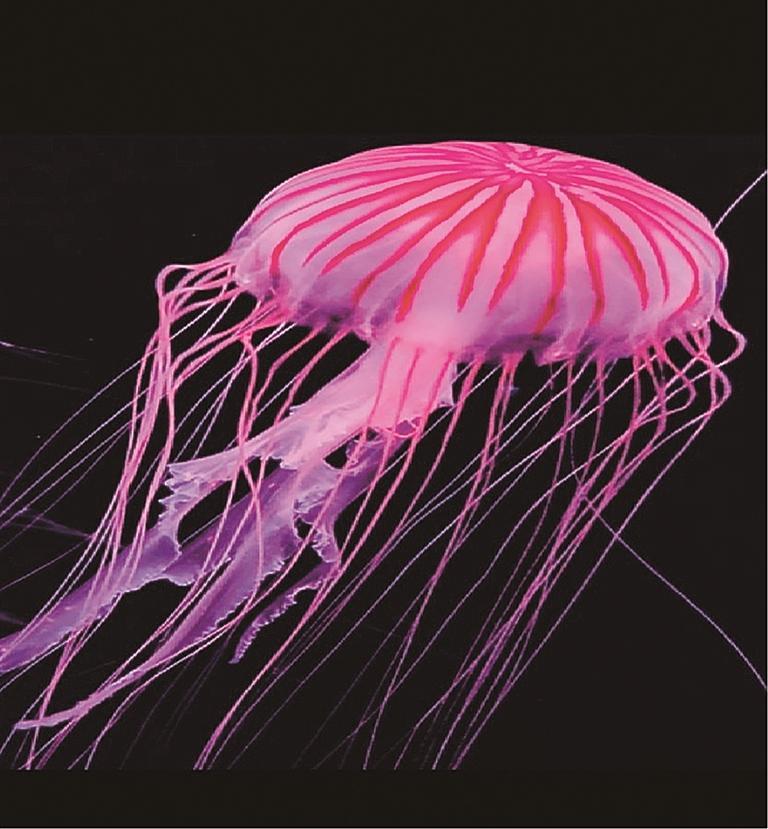 黑星海刺 主要分布于太平洋、大西洋北部和北冰洋。最大直徑可達(dá)30厘米,捕食小型甲殼動(dòng)物、軟體動(dòng)物、魚卵和其他小型水母。