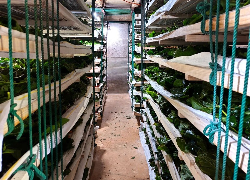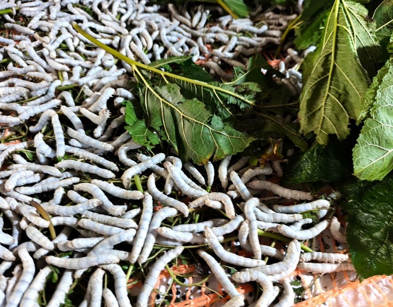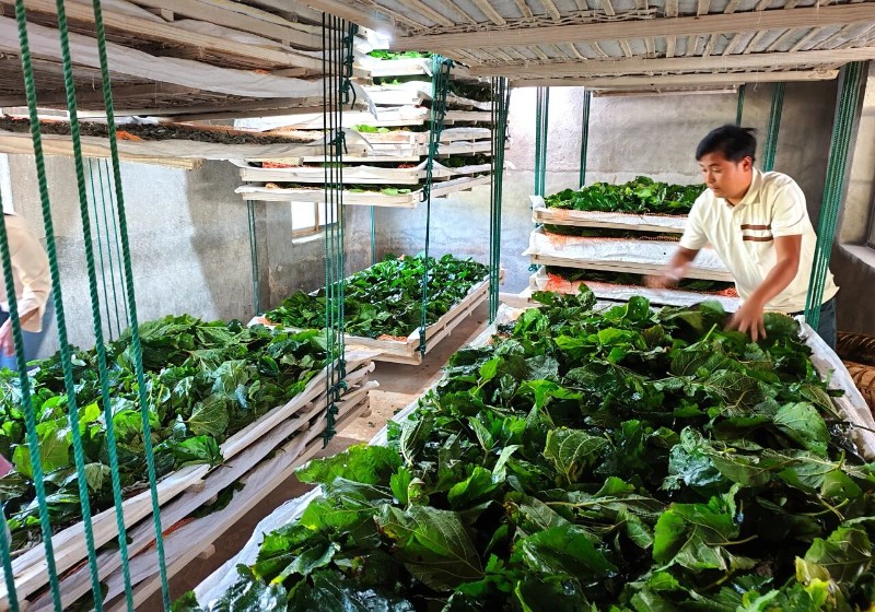 當(dāng)下,南陽村正沉浸在全年的最后一輪豐收忙碌中。蠶房?jī)?nèi),一排排蠶架整齊林立,即將吐絲的熟蠶體態(tài)豐盈、通體透亮。村民們熟練地穿梭其間,添葉、清理、觀察長(zhǎng)勢(shì)。繁忙而有序的景象,勾勒出南陽村深秋時(shí)節(jié)最動(dòng)人的畫卷。