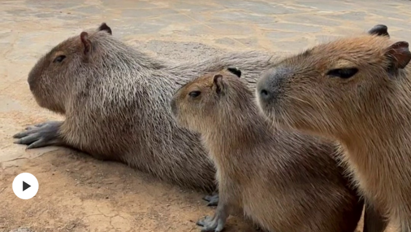 云南野生動(dòng)物園:水豚列隊(duì) 萌趣治愈