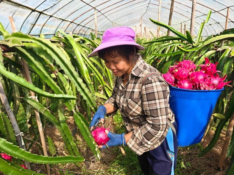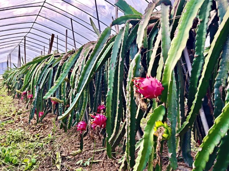 “去年火龍果收成不錯(cuò),來采摘的人也多,除去成本外,利潤差不多有2萬,今年果子的品質(zhì)勝過去年,相信一定能有個(gè)好收成?!痹d翠看著棚里掛滿枝頭的火龍果,眼里滿是期待。