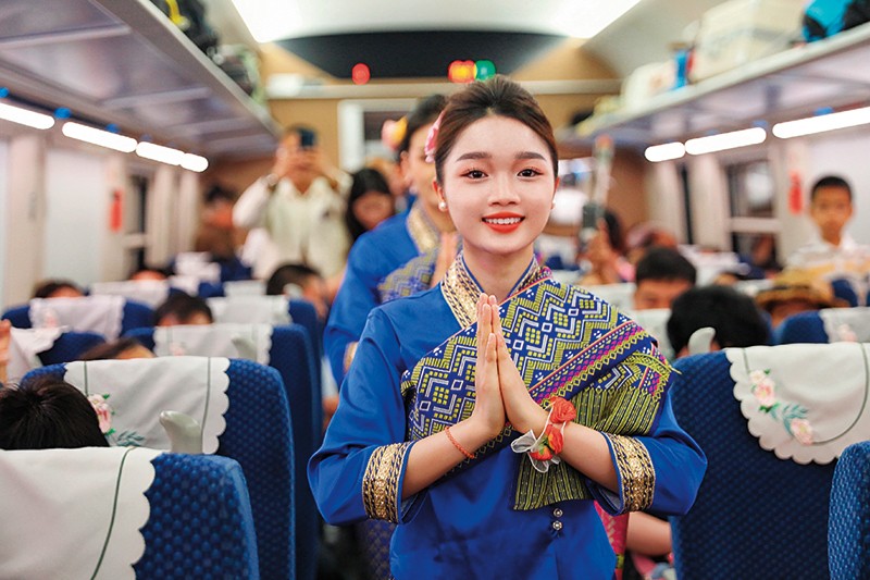 黃金旅游通道、黃金貿(mào)易通道、黃金發(fā)展通道……2021年通車運營以來,北起中國昆明、南抵老撾萬象、全長1035公里的中老鐵路已成為一條聯(lián)通內(nèi)外、輻射周邊、雙向互濟的黃金線路,有力促進了沿線地區(qū)經(jīng)貿(mào)合作和文化交流。