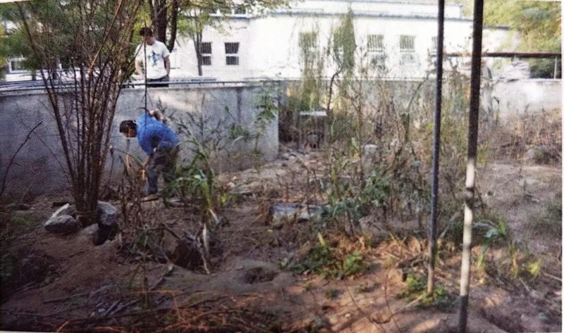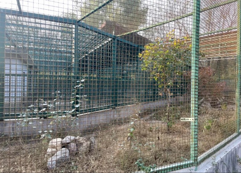 熊科動(dòng)物康復(fù)籠舍需正面為高40cm、寬30cm的水泥基座,上面為直徑1.5cm的圓鋼焊接的柵欄式網(wǎng)墻,高2.5m以上,頂部也用直徑1.5cm的圓鋼焊接的柵欄全封閉,內(nèi)設(shè)獸穴應(yīng)該用實(shí)心的木材、混凝土塊或磚制成,體積為2.44m×2.44m×1.83m。這樣可以安置1個(gè)成體或2個(gè)亞成體。籠舍內(nèi)地面不要硬化,地面50cm以下做好防逃逸襯網(wǎng),地面墊料材質(zhì)應(yīng)該是天然的(土壤和草地)以免破壞動(dòng)物足墊,有條件的話,籠舍內(nèi)安置大樹墩和耐用的木盆,讓熊科動(dòng)物玩耍、沐浴也是必要的。