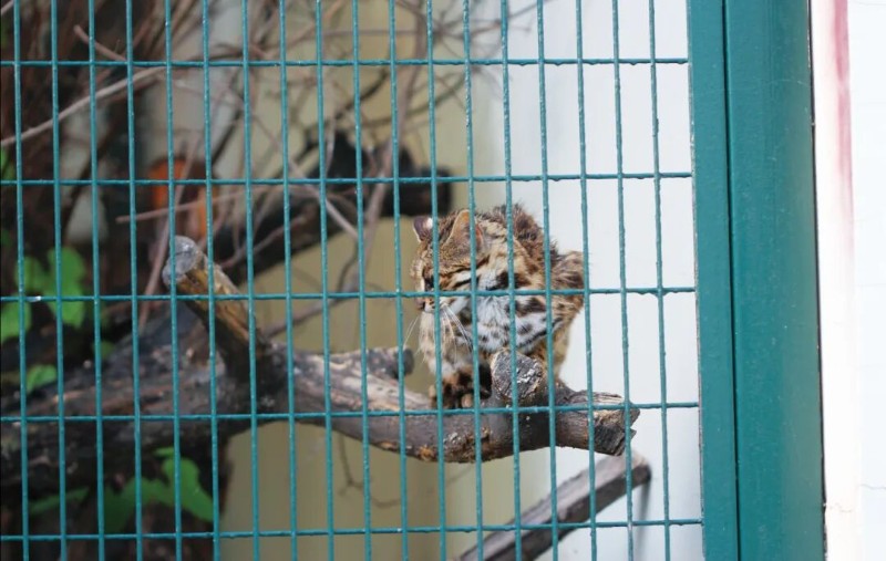 貓科動(dòng)物康復(fù)籠舍分為內(nèi)舍和外舍。內(nèi)舍面積最小為4m×3m,高3m,四面磚墻,地面、墻面水泥抹光,內(nèi)、外舍之間磚墻,中間修建一處50cm×50cm的推拉門。外舍面積最小為3m×3m,兩邊磚墻,內(nèi)壁水泥抹光,正面為高40cm、寬30cm的水泥基座,上面為直徑1.5cm的圓鋼焊接的柵欄式網(wǎng)墻,高2m,頂部也用直徑1.5cm的圓鋼焊接的柵欄全封閉。地面不要硬化,地面50cm下用不銹鋼網(wǎng)做內(nèi)襯,防止動(dòng)物打洞逃逸?;\舍內(nèi)應(yīng)該設(shè)置讓動(dòng)物攀爬的大的枝條、樹干、樹墩(有些中空)和高臺(tái)。其他設(shè)施如塑料桶、大口徑PVC管、籠箱或人工洞穴等,供動(dòng)物隱蔽、休息。