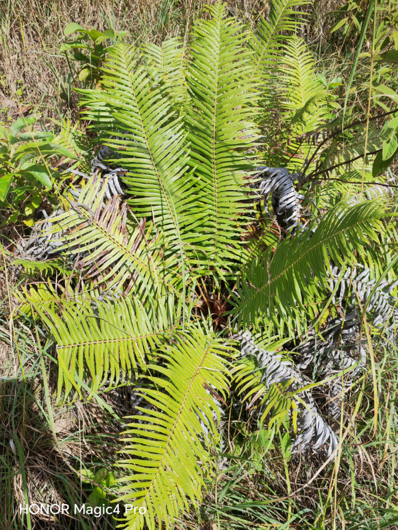 蘇鐵蕨因其莖葉形態(tài)酷似蘇鐵而得名,是國家二級重點保護野生植物,被列入《中國國家重點保護野生植物名錄》(2021年版)。它是源自古生代泥盆紀(jì)的孑遺植物,是蕨類植物向裸子植物過渡的關(guān)鍵類群,被譽為“蕨類植物活化石”,對研究植物系統(tǒng)演化與古氣候變化具有重要價值,堪稱植物界的“活化石”與進(jìn)化“解謎大師”。在長達(dá)四億年的演化歷程中,蘇鐵蕨見證了恐龍的興衰與地球環(huán)境的巨變,其發(fā)達(dá)的木質(zhì)部、增粗的莖干以及具有胚球但無真正種子的特征,為科研人員還原植物進(jìn)化歷史提供了珍貴線索。