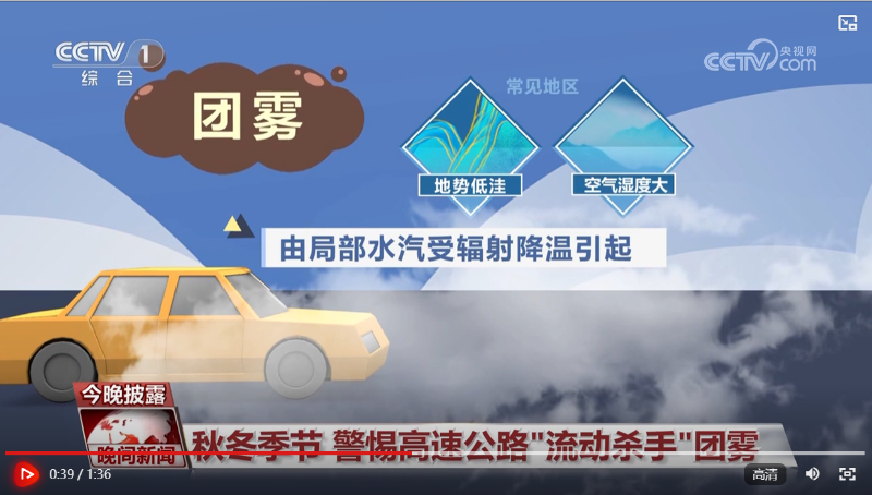 央視網(wǎng)消息:秋冬季節(jié)正是團(tuán)霧多發(fā)季,因團(tuán)霧造成的多車連續(xù)追尾事故屢有發(fā)生。團(tuán)霧究竟是怎么形成的?遇到團(tuán)霧應(yīng)該怎么辦?