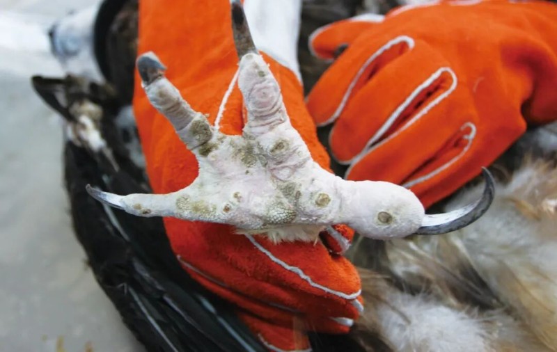 皮膚變色(嚴(yán)重、慢性病例為黑色)。皮膚冰冷,羽毛灼傷。水腫(特別翅尖及雙爪)。