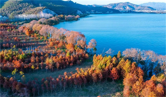 千百年來,星云湖以其豐富的水產(chǎn)資源滋養(yǎng)著江川人民,使這片土地享有“高原水鄉(xiāng)”“魚米之鄉(xiāng)”的美譽(yù)。湖與人、人與魚,在此相依共存。近年來,江川區(qū)大力推動沿湖生態(tài)文明建設(shè),全民護(hù)湖蔚然成風(fēng),如今湖畔水草豐茂,柳樹蘆草成行。秋日里,湖畔的水杉由翠綠漸變?yōu)榻瘘S橘紅,與澄澈的湖水和湛藍(lán)的天空共同構(gòu)成一幅寧靜的生態(tài)畫卷,日落時(shí)分,晚霞將湖水染成橘紅,靜謐如畫,令人難忘。