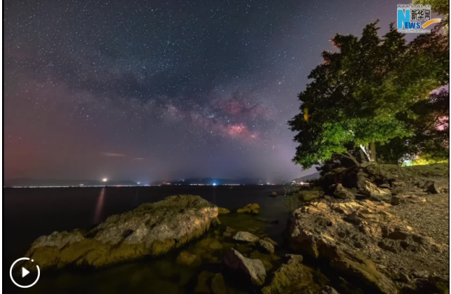 近日,攝影師在云南省澄江市的撫仙湖畔拍攝到了星空美景。夜空中星河流淌,湖面上星光搖曳,整條銀河墜入深藍(lán)湖面,仿佛一伸手就能撈起滿掌星芒。(玉溪市融媒體中心)