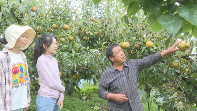 一人富不算富,眾人富才是真的富。在蘇自元的帶動下,板橋鎮(zhèn)黃梨種植面積已發(fā)展至1000畝,畝產(chǎn)量達(dá)1100公斤。每到黃梨采摘季,周邊村民便會來到梨園務(wù)工,實現(xiàn)“家門口就業(yè)”。“平時在家附近打零工,梨熟了就來梨園幫忙,一天能有100多元收入,很不錯!”臥佛村村民蘇學(xué)玉笑著說,豐收的喜悅洋溢在臉上。