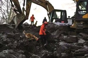 “當(dāng)時(shí)滑坡的體量太大了,三豐幾乎沒歇過。只要挖機(jī)刨出一點(diǎn)空間,我馬上讓它上去嗅探。我能從它的興奮程度和吠叫快慢看出來,下面是真的有人還是只是氣味殘留?!蓖趵ふf,夜晚山上寒風(fēng)刺骨,他幾乎沒合過眼?!半m然都說犬是怕熱不怕冷,但那幾天真的太冷了。我很擔(dān)心它,所以我把它拴在身邊,攏一堆火取暖?!彼丫冉Y(jié)束返程的時(shí)候,三豐的腳上、身上都被碎石和荊棘劃傷了?!八约赫伊艘粔K石頭,累得靠在石頭上睡著了?!?/p>