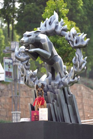 神氣十足的三豐榮獲“二級(jí)功勛犬”稱號(hào)