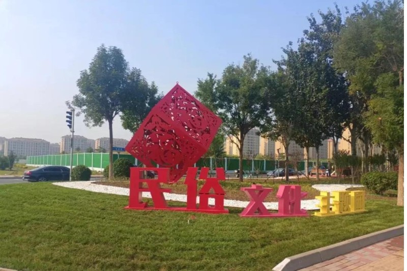 這座位于躍進路與津濱大道交口、占地4300平方米的口袋公園,建設之初便以“修復綠地、植入文化”為核心思路。東麗區(qū)城管委充分利用現(xiàn)狀植物構(gòu)建低維護生態(tài)綠地,同時將東麗非物質(zhì)文化遺產(chǎn)“大鄭剪紙”作為設計主線——提取“中國紅”與剪紙傳統(tǒng)圖樣,打造出“大鄭剪紙”魔方,搭配夜間亮起的水紋射燈,讓公園夜晚靈動又富有文化韻味;園內(nèi)的特色展示牌,則結(jié)合休閑設施向市民介紹“大鄭剪紙”的歷史與技藝,不少家長帶著孩子邊玩邊學,非遺知識就這樣在潛移默化中傳承。