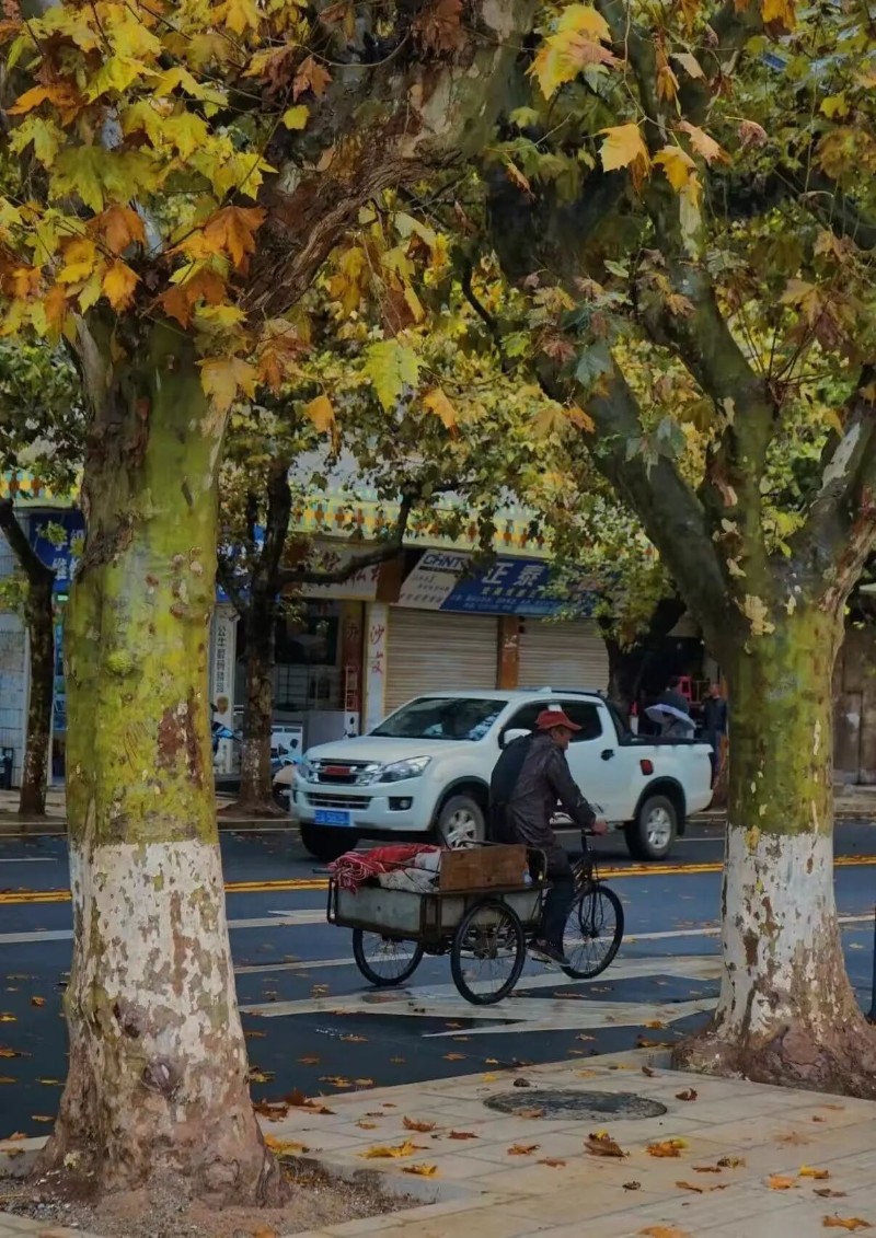 入秋的石林縣城,街道兩旁的梧桐樹最先知曉時(shí)節(jié)。葉片由綠漸黃,風(fēng)一過便簌簌落下,在地上鋪成柔軟的金色絨毯。
