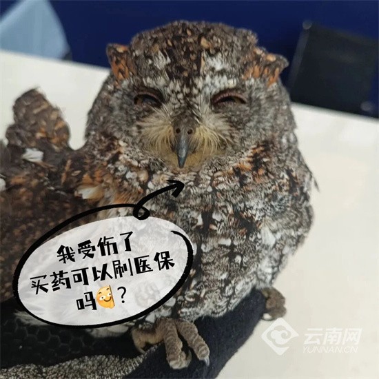 “警察同志,有只受傷的貓頭鷹來我們藥店買藥,你們快來看看!”昆明市富民縣公安局接到款莊鎮(zhèn)群眾報警,稱在某藥店門口發(fā)現(xiàn)一只貓頭鷹,需要民警前往處理。
