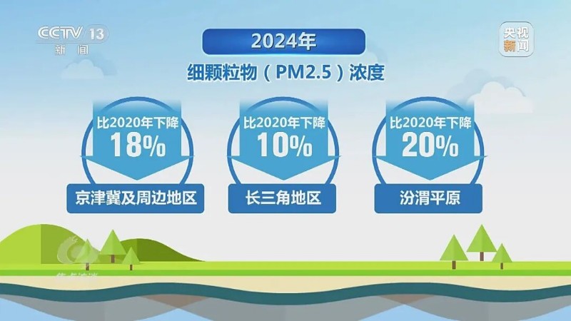 為了天更藍(lán),水更清,這五年,累計(jì)完成散煤治理4100萬戶;淘汰高排放車輛近2000萬輛。2024年京津冀及周邊地區(qū)、長三角地區(qū)、汾渭平原細(xì)顆粒物(PM2.5)濃度分別比2020年下降18%、10%和20%;全國3000多條地級及以上城市黑臭水體基本消除,縣級城市黑臭水體消除比例超過90%。