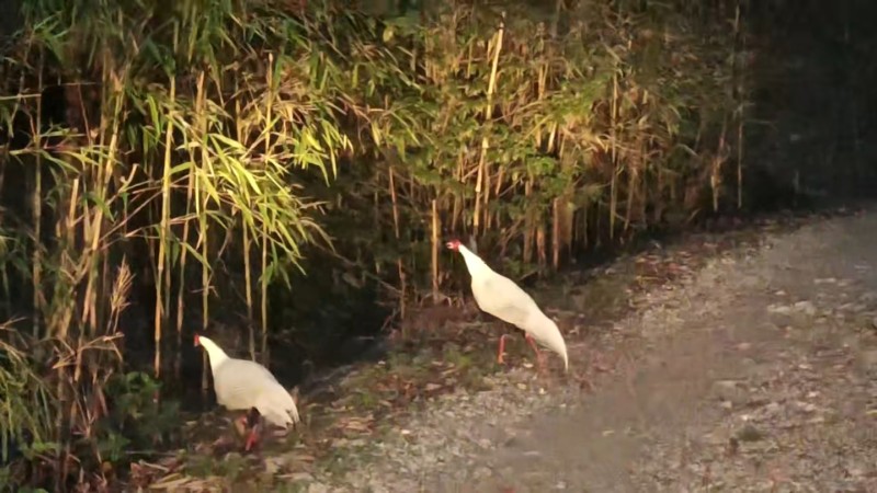 近日,中國科學(xué)院哀牢山生態(tài)站監(jiān)測員偶遇兩只夜間覓食的“林中仙子”白鷴,并用手機(jī)記錄下這一和諧畫面。
