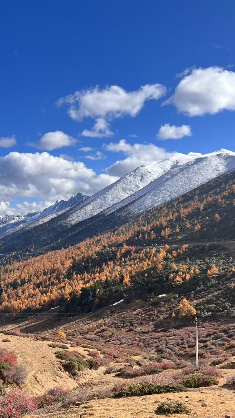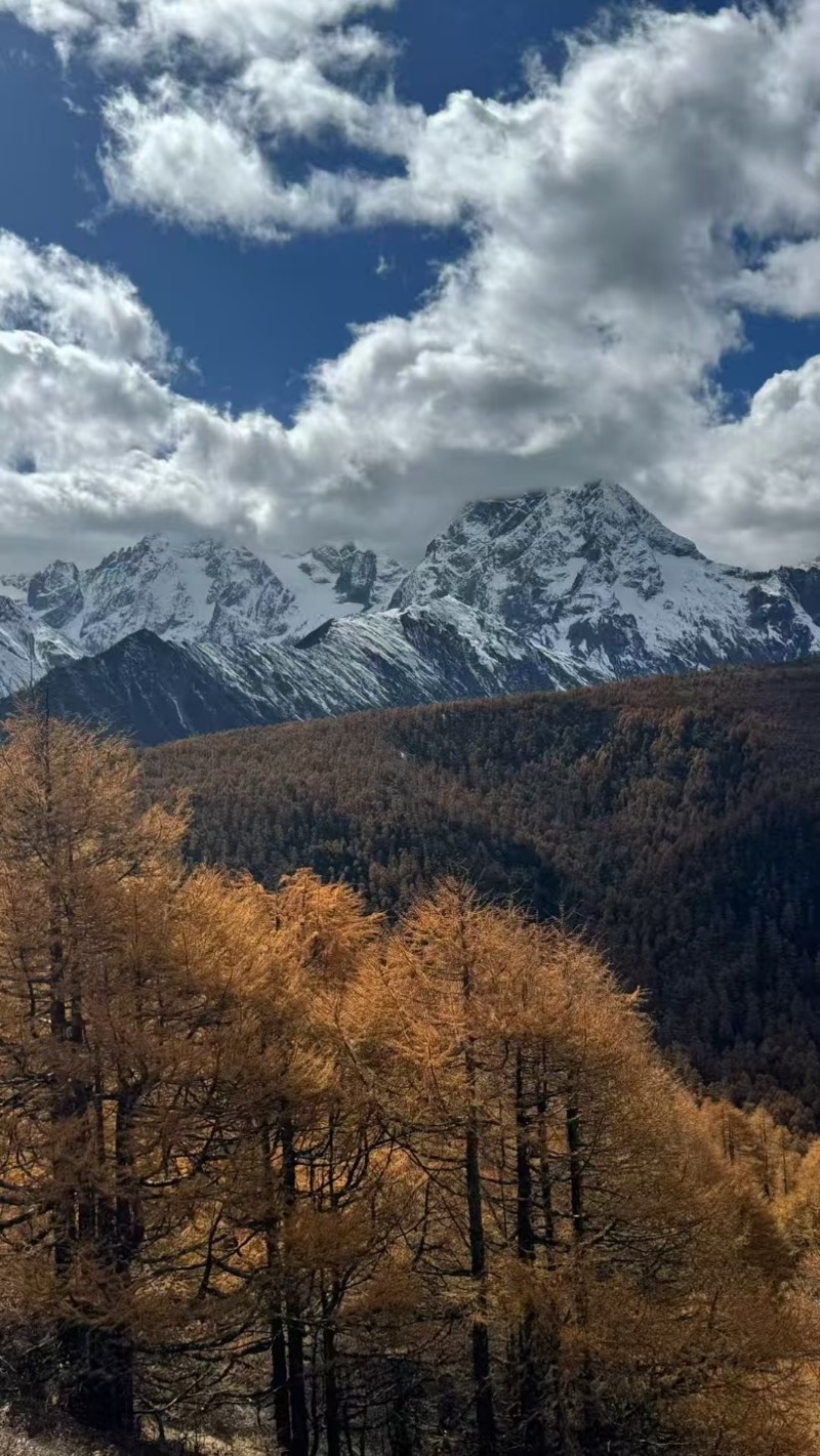 當巍峨的雪山邂逅金黃秋林,藍天流云為幕,自然的筆觸在這片土地上繪就極致浪漫。每一幅,都是天地共織的詩行
