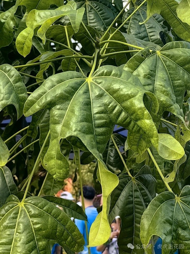 從圖上看,其苗期3裂,長成大樹后葉5-9裂的掌狀葉倒是像槭葉。但是,樹干像酒瓶嗎?