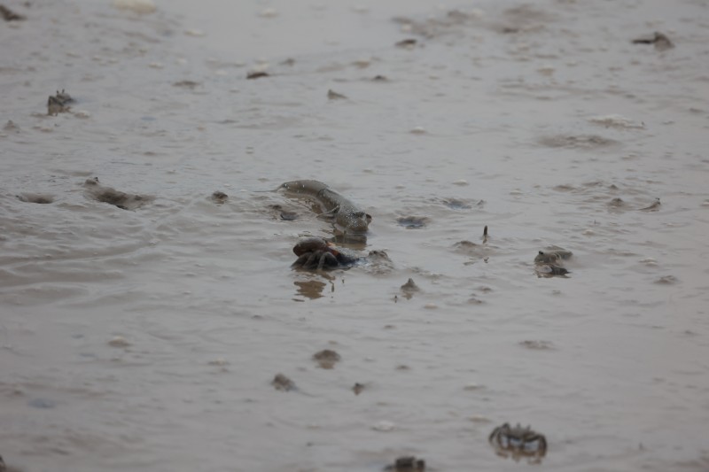 在灘涂經(jīng)??吹綇椡眶~等小魚類在灘涂跳躍或潛伏。漁民們抓彈涂魚有很多方法,最簡(jiǎn)單的一種是利用小竹筒做假洞的方法。在彈涂魚活動(dòng)比較多的地方,插入小竹筒,當(dāng)有成群的彈涂魚活動(dòng)時(shí),人走近去,彈涂魚驚慌不擇就成了盤中餐了。