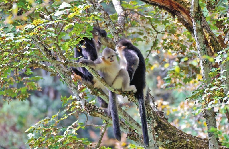 近年來(lái),云南省持續(xù)推進(jìn)滇金絲猴棲息地修復(fù)工作,通過(guò)種植云杉、冷杉等樹(shù)種,在白馬雪山國(guó)家級(jí)自然保護(hù)區(qū)等地成功構(gòu)建起連接滇金絲猴棲息地的生態(tài)廊道,滇金絲猴種群數(shù)量持續(xù)增長(zhǎng)。目前,保護(hù)區(qū)內(nèi)的滇金絲猴種群數(shù)量已增長(zhǎng)到約2800只,占全國(guó)的65%以上。圖為滇金絲猴在位于維西傈僳族自治縣塔城鎮(zhèn)的香格里拉滇金絲猴國(guó)家公園內(nèi)嬉戲玩耍。