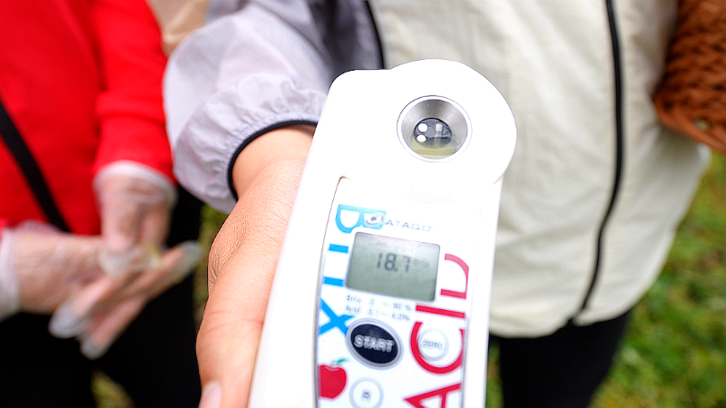虎革村蘋果種植戶李春梅捧著剛摘下的蘋果,滿臉自豪地說:“我們舍得鄉(xiāng)海拔高、光照強,蘋果糖分積累特別足,吃著脆甜爽口,顏色也鮮亮。目前主要栽種紅富士201、黃金維納斯、瑞琪三個品種,普通蘋果甜度約10到15度,我們的蘋果能達到17到19度,特別受消費者喜歡。今年果子長勢比往年好,按大小和品種,收購價格每公斤6到14元,收入比去年高不少?!?/p>