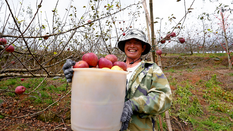 時值金秋,在海拔超過2000米的云南省文山壯族苗族自治州丘北縣舍得鄉(xiāng)卜戛村委會虎革村,連綿的蘋果園迎來了一年中最動人的時刻。紅透的果子掛滿枝頭,將樹梢壓得微垂,空氣中飄著濃郁果香。農(nóng)戶們在果林間穿梭,麻利地摘下一個個蘋果,笑聲中盡是豐收的甜意。