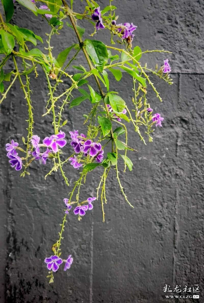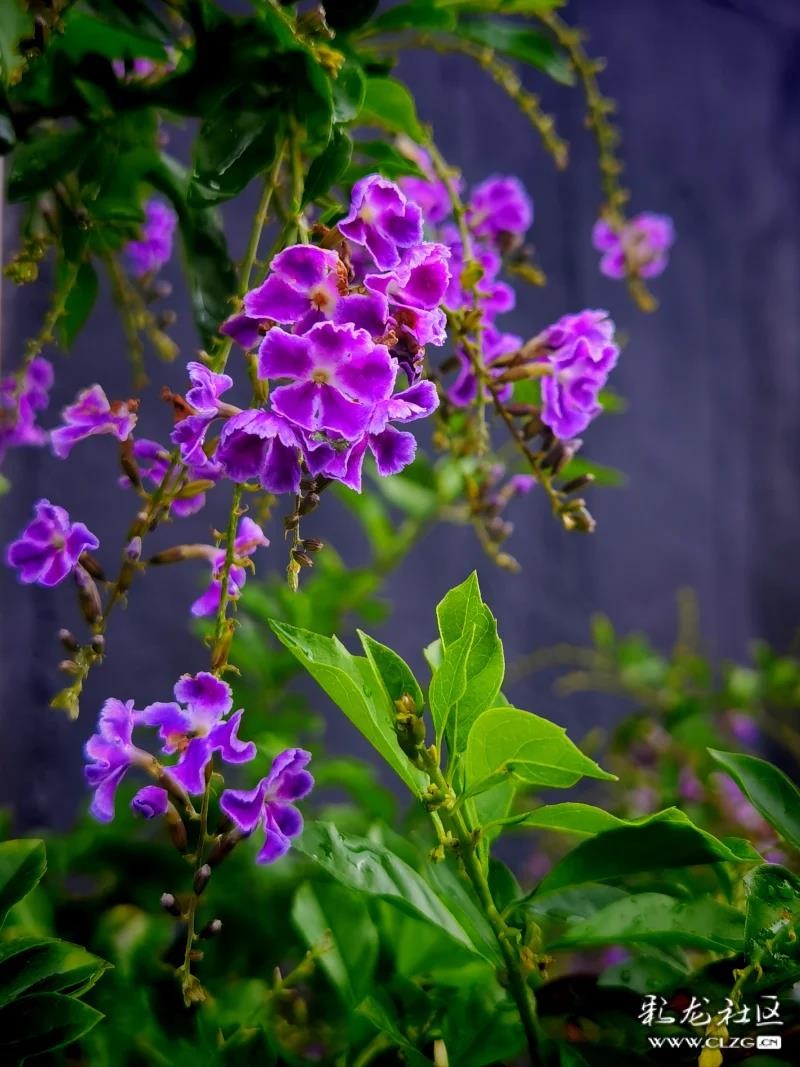 昆明雨后,假連翹紫花與雨滴的溫柔對話