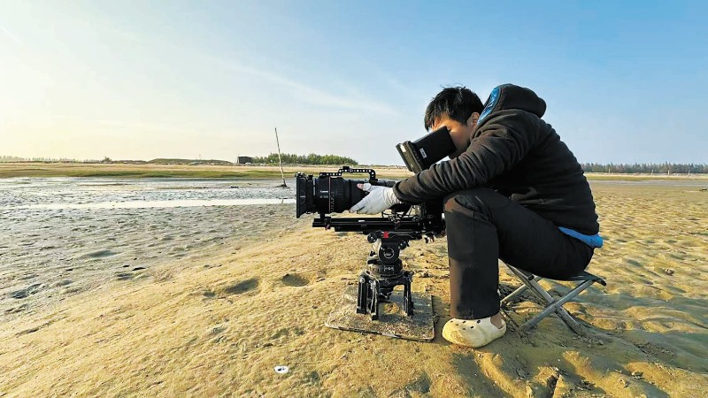 勺嘴鷸拍攝工作照?!稐l子泥:勺嘴鷸的遷徙奇跡》攝制組供圖