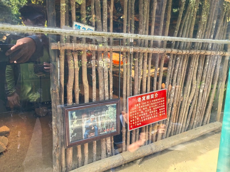 善洲林場老窩棚,竹葉帽、蓑衣、砍刀……這些見證楊善洲22年植樹造林的遺物靜默無言,不少參觀者睹物思人,悄然落淚。