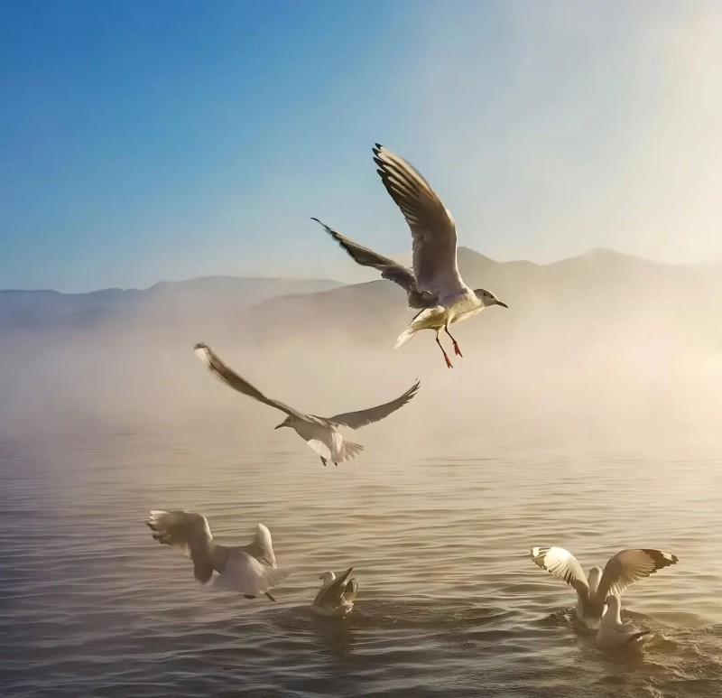 每年11月至次年3月,成千上萬(wàn)的紅嘴鷗從西伯利亞遠(yuǎn)道而來(lái),在瀘沽湖過(guò)冬。它們時(shí)而掠過(guò)湖面,時(shí)而在空中盤(pán)旋,成為冬日里最靈動(dòng)的風(fēng)景。