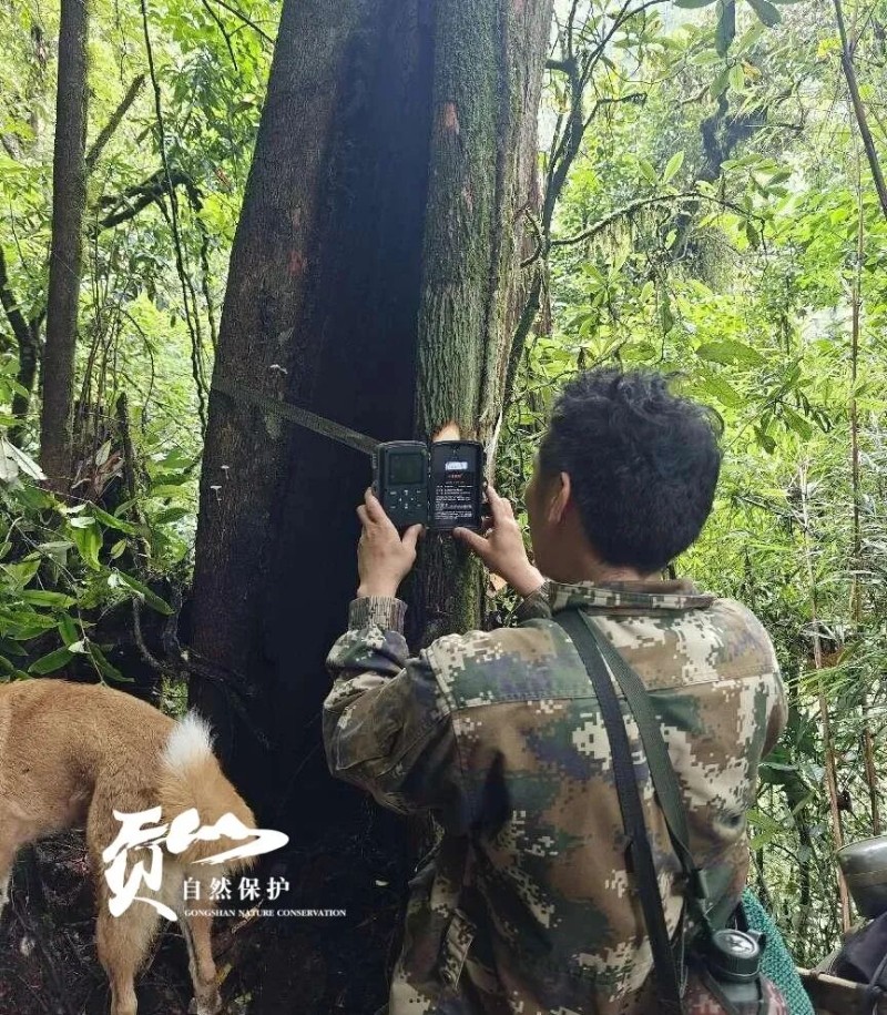 高黎貢山的樹,從不是沉默的旁觀者。它們用根系牢牢抓住山體,抵御著滑坡和泥石流;用枝葉調(diào)節(jié)著氣候,讓這里始終保持著適宜生物生存的溫度和濕度;甚至枯倒的樹木,都成為了菌類、苔蘚和昆蟲繁殖生存的家園。春去秋來落葉在地上鋪成厚厚的地毯,腐爛變成養(yǎng)分,無聲地滋養(yǎng)著這片土地,也滋養(yǎng)著生活在這里的每一個生命,就像那些常年駐守在大山里的高黎貢山人,他們也像樹一樣扎根在這里,甘愿做動物疫情防控的“鏟屎官”,物種監(jiān)測的“解碼人”,反偷砍盜獵的“孤勇者”,影像記錄的“狙擊手”,科普答疑的“傳聲筒”,默默地守護著大自然給予我們最珍貴的禮物。