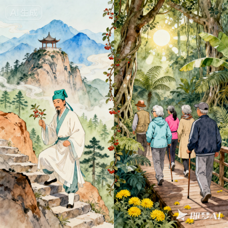 重陽登高,最初的目的是避禍禳災(zāi)。而在養(yǎng)生的角度看來,秋高氣爽之時,登臨高處,更是為了吐故納新,吸納天地間的浩然清氣,以滌蕩身心,抵御秋冬的寒邪。