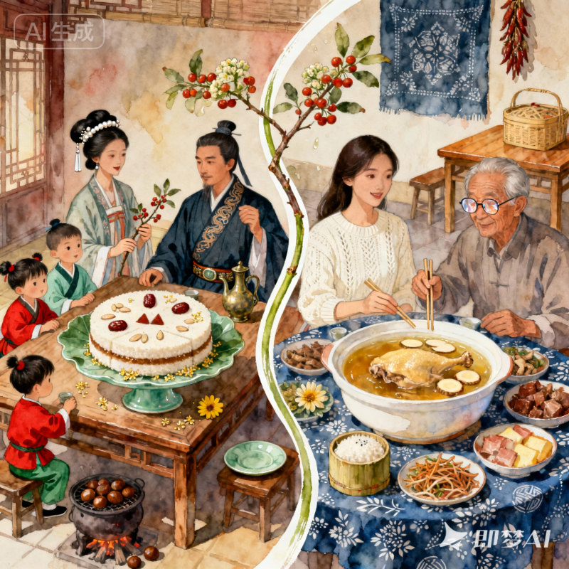 古時重陽,人們將茱萸裝入香囊,或佩于臂肘,認(rèn)為其濃烈香氣可驅(qū)邪避惡。從醫(yī)學(xué)角度看,茱萸性辛熱,有溫中、止痛、理氣之功,能驅(qū)散秋日的寒濕風(fēng)邪。