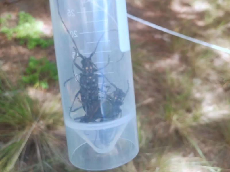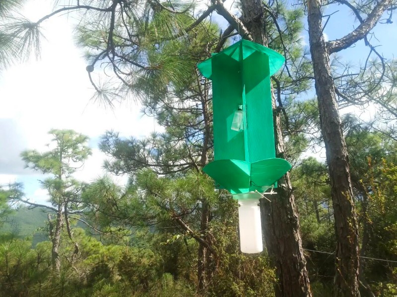 調(diào)查小組按比例隨機抽取10個亞健康和不健康小班,采用剝皮法和伐木解析法捕捉害蟲并制作分類標本;在多個健康小班內(nèi)的云南松、華山松上布設(shè)誘捕器與餌木堆,專項誘捕松褐天牛和小蠹類害蟲。