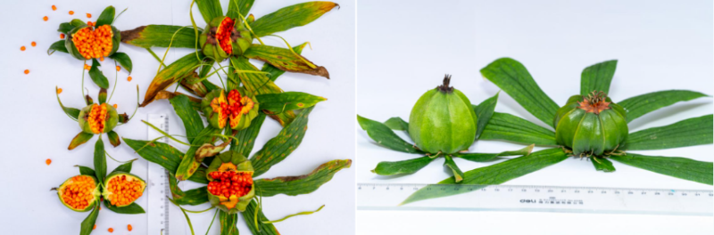 種苗移栽5年鮮藥材產(chǎn)量1500千克/畝,重樓總皂苷超1.5%。7年生(成熟可采挖)植株平均高1.6米,根狀莖易萌生不定芽,葉倒卵形,先端急尖;果實(shí)扁球形,外種皮紅色?;ü跒?月下旬至9月下旬,種子成熟期為10月下旬至11月上旬,倒苗期為12月上旬。