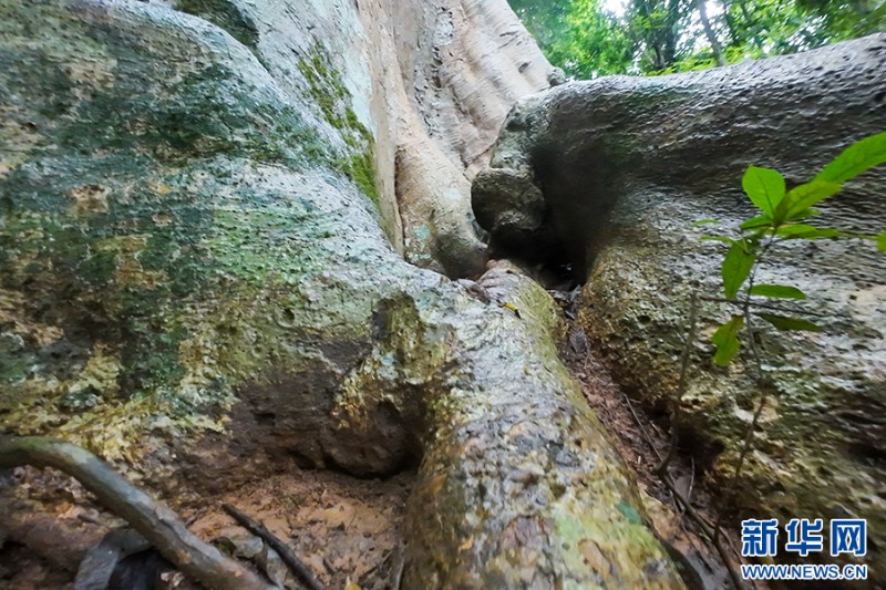 四數(shù)木樹(shù)干底部寬大的板根(7月2日攝)。新華網(wǎng)發(fā)(徐華陵 攝)