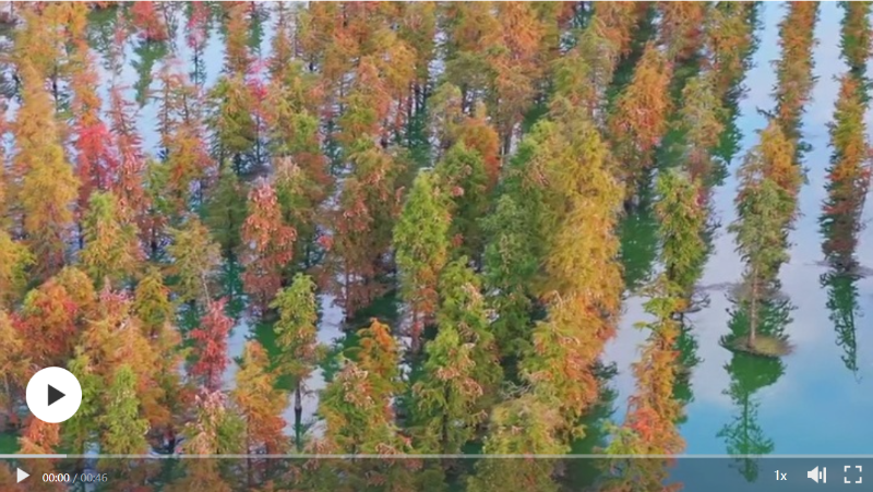 深秋時節(jié),云南晉寧南滇池國家濕地公園,水杉林層林盡染,在藍(lán)天碧水映襯下,宛如一幅色彩斑斕的水彩畫。