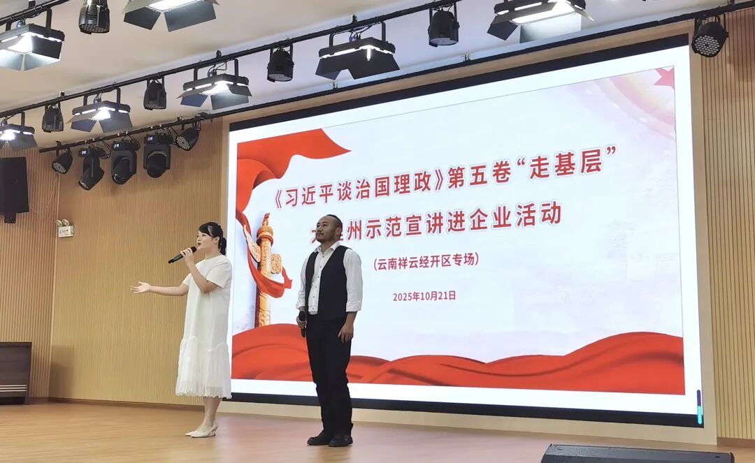 10月21日下午,大理州舉行《習(xí)近平談治國(guó)理政》第五卷“走基層”大理州示范宣講進(jìn)企業(yè)云南祥云經(jīng)開區(qū)專場(chǎng)活動(dòng),這場(chǎng)“文藝宣講 理論宣講 實(shí)踐分享 互動(dòng)交流”形式更接地氣,讓宣講從“一個(gè)人講”變成了“一群人講”。