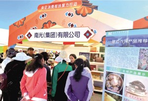南光集團(tuán)作為祿勸縣的定點(diǎn)幫扶單位主辦活動(dòng),祿勸縣供銷社及本土企業(yè)組團(tuán)參展。撒壩火腿、烏天麻、轎子山泉、中藥材口服液等30余種祿勸代表性優(yōu)質(zhì)產(chǎn)品精彩亮相,涵蓋生態(tài)農(nóng)產(chǎn)品干鮮貨、特色小吃、飲品三大類。