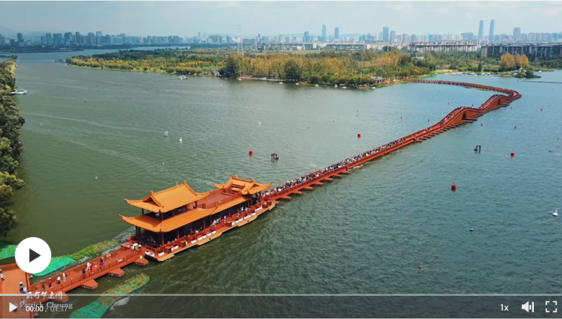 昆明滇池草海浮橋猶如一條金黃色絲帶輕盈蜿蜒于滇池草海碧波之上,不僅打通了東島與濕地之間的交通連接,更以智能、生態(tài)與美觀融合的設(shè)計,成為滇池畔一道兼具功能與美學的生態(tài)景觀。