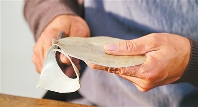 | 裁剪銀片,準(zhǔn)備打制銀胎。 |