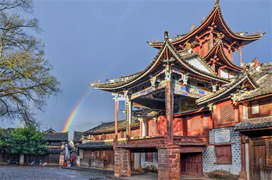 當(dāng)秋風(fēng)翻過石寶山,大理白族自治州劍川縣沙溪古鎮(zhèn)的秋天便從寺登街的瓦檐上滴落了,銀杏葉篩下碎金,玉津橋上的馬蹄印里盛著昨夜的雨,陽光暖暖地?fù)肀е稳耍垇砜团c它一同走進(jìn)這古樸寧靜的秋日。