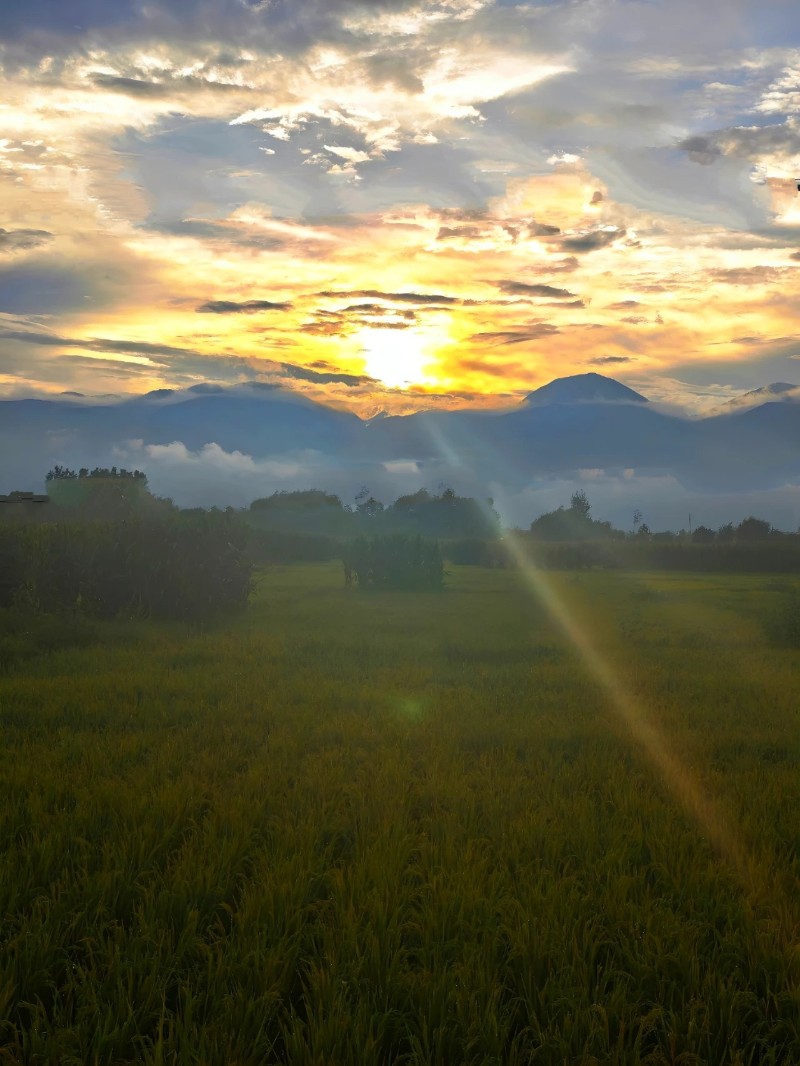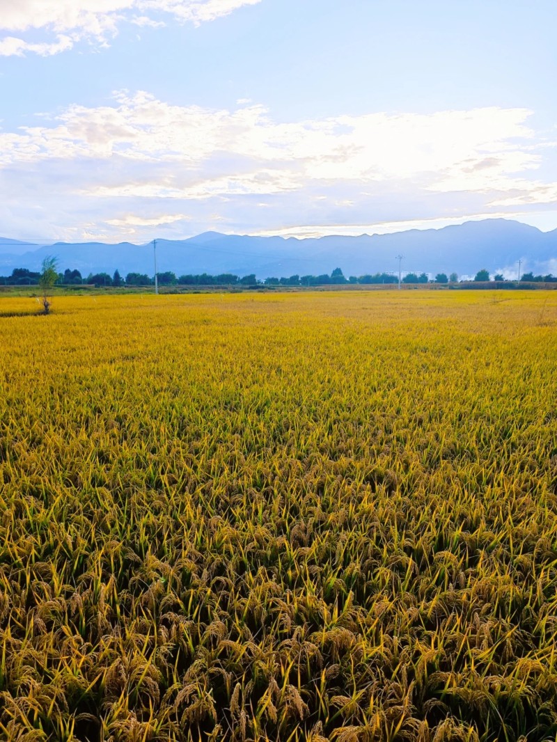 遠(yuǎn)山如黛,守護(hù)著這片金黃,白族民居的炊煙裊裊升起,在暮色中畫出思鄉(xiāng)的曲線。鶴慶的秋田,緘默無言,卻將一份關(guān)于故鄉(xiāng)的記憶,悄悄種在每一個(gè)凝望它的游子心間。無論走得多遠(yuǎn),這抹金黃都會(huì)在某個(gè)秋夜入夢(mèng),帶著稻香的溫柔,撫慰漂泊的靈魂。