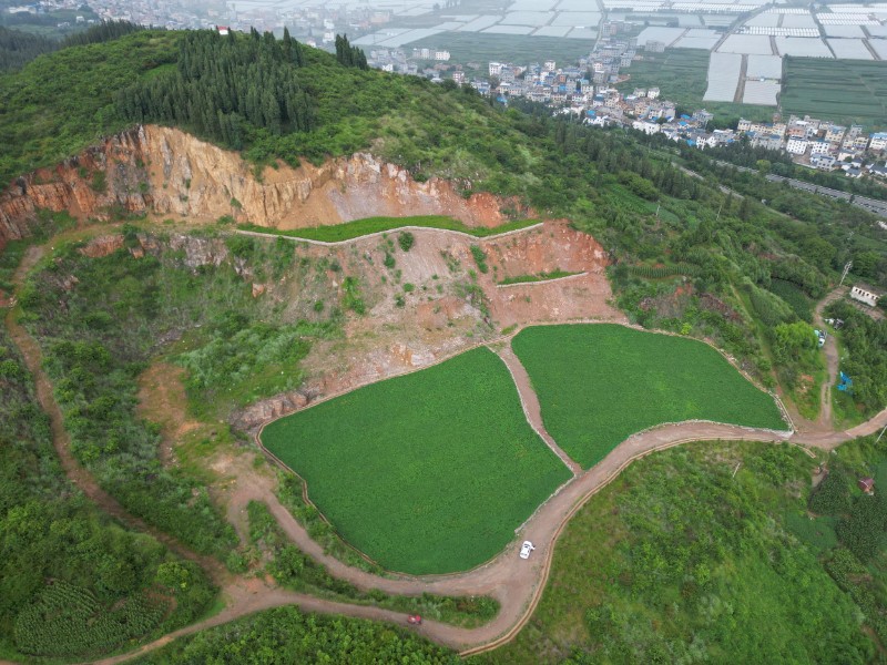 項(xiàng)目創(chuàng)新融合“分級(jí)削臺(tái)+客土回填+截排水系統(tǒng)+植被重建”技術(shù)體系,并將海綿城市理念引入礦山修復(fù),修建截排水溝、沉砂池等設(shè)施44處,大幅提升區(qū)域水源涵養(yǎng)能力。在植被恢復(fù)方面,優(yōu)選云南松、藏柏、車(chē)桑子等鄉(xiāng)土樹(shù)種構(gòu)建生態(tài)防護(hù)骨架,結(jié)合“喬木固坡、灌木護(hù)坡、草本覆綠”的立體種植模式,并搭配格?;ǖ扔^賞草本花卉。據(jù)悉,項(xiàng)目累計(jì)種植各類(lèi)苗木逾2.3萬(wàn)株,修復(fù)面積達(dá)776畝。復(fù)墾區(qū)域覆土厚度達(dá)0.5米,土壤有機(jī)質(zhì)含量從治理前的0.3%提升至1.8%,達(dá)到國(guó)家耕地標(biāo)準(zhǔn)。