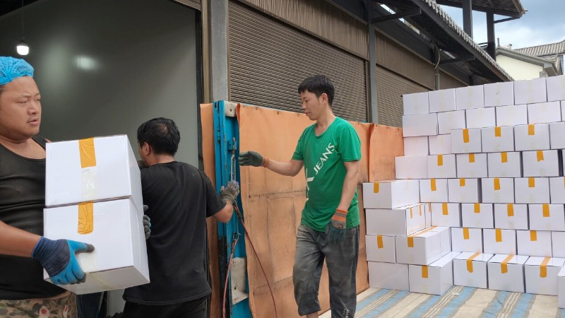 在大理辛達(dá)貿(mào)易有限公司,工人們正在將一箱箱核桃仁裝上貨車,21噸核桃仁經(jīng)20天陸運(yùn)將抵達(dá)格魯吉亞。