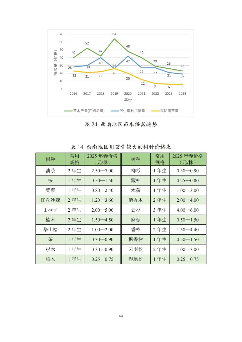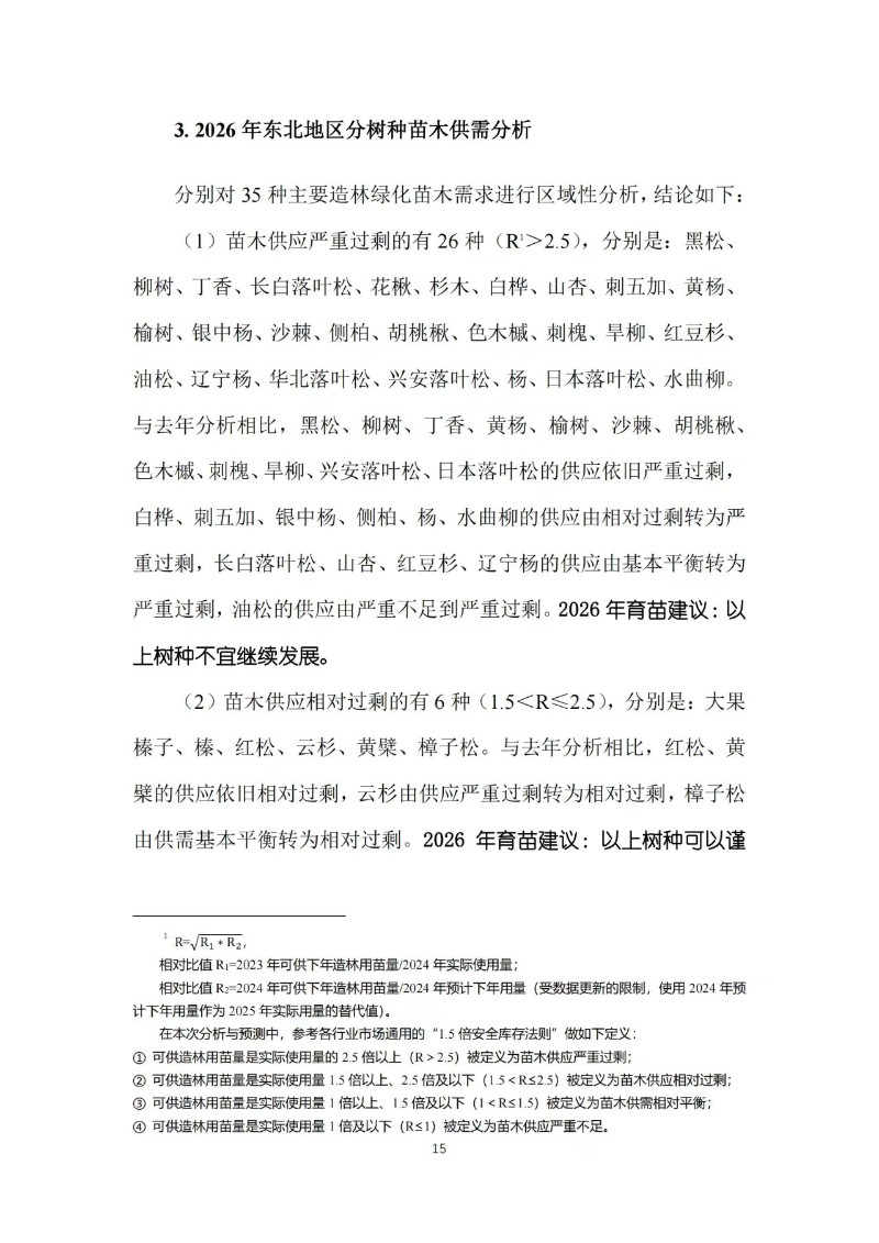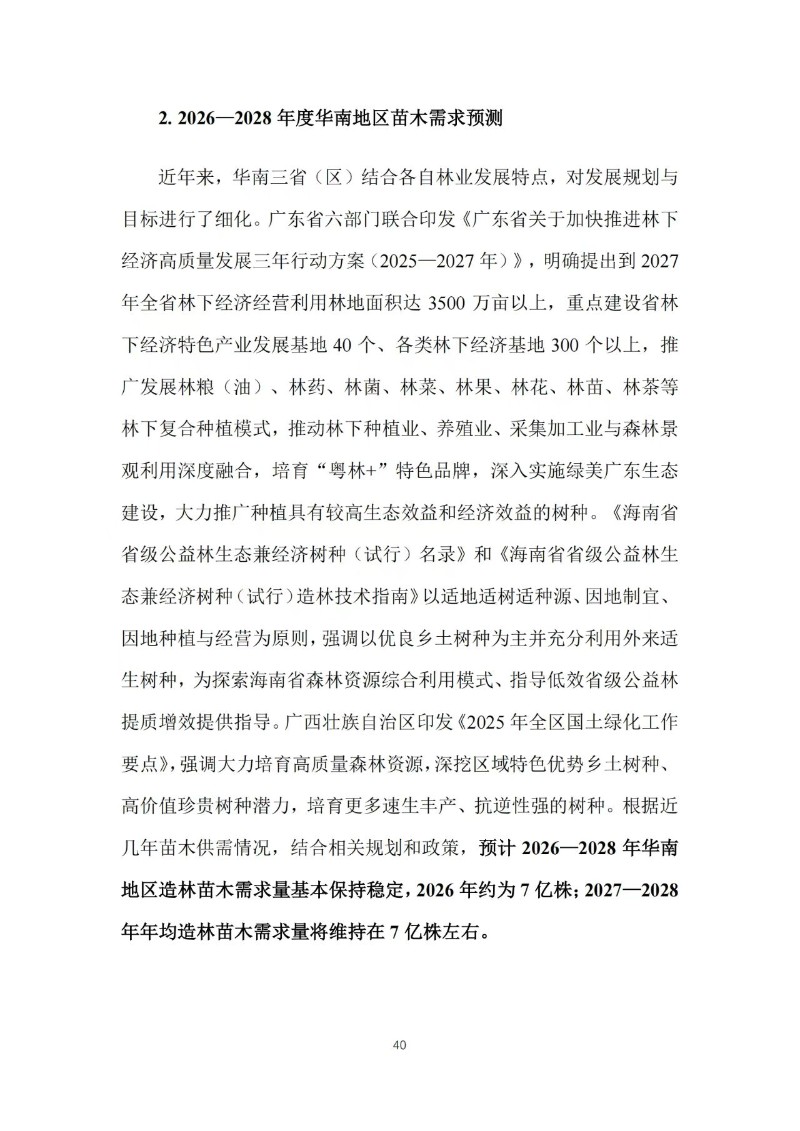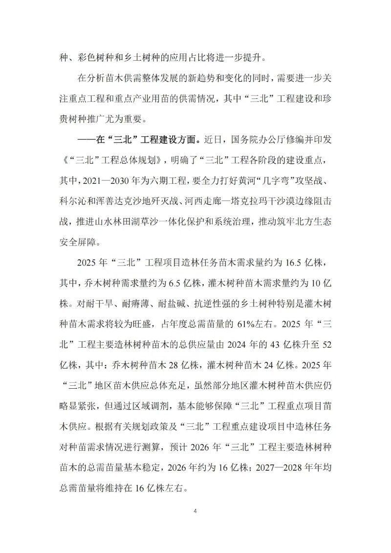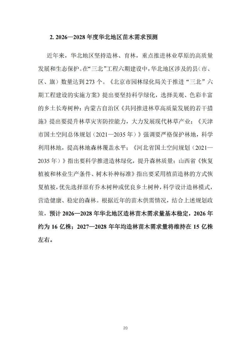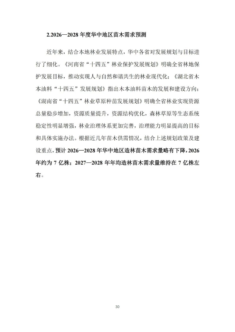 為有效緩解種苗供需結(jié)構(gòu)性矛盾,引導(dǎo)苗木生產(chǎn)經(jīng)營者合理安排生產(chǎn),推進(jìn)林草種苗事業(yè)高質(zhì)量發(fā)展,國家林業(yè)和草原局國有林場和種苗管理司組織北京林業(yè)大學(xué)、全國(合肥)苗木花卉交易信息中心和中國經(jīng)濟(jì)信息社,根據(jù)當(dāng)前我國國土綠化和生態(tài)保護(hù)修復(fù)的形勢與任務(wù)、以及種苗生產(chǎn)實(shí)際情況,對2026年全國苗木供需情況進(jìn)行了分析,編制完成了《2026年度全國苗木供需分析報告》,于11月1日正式發(fā)布。